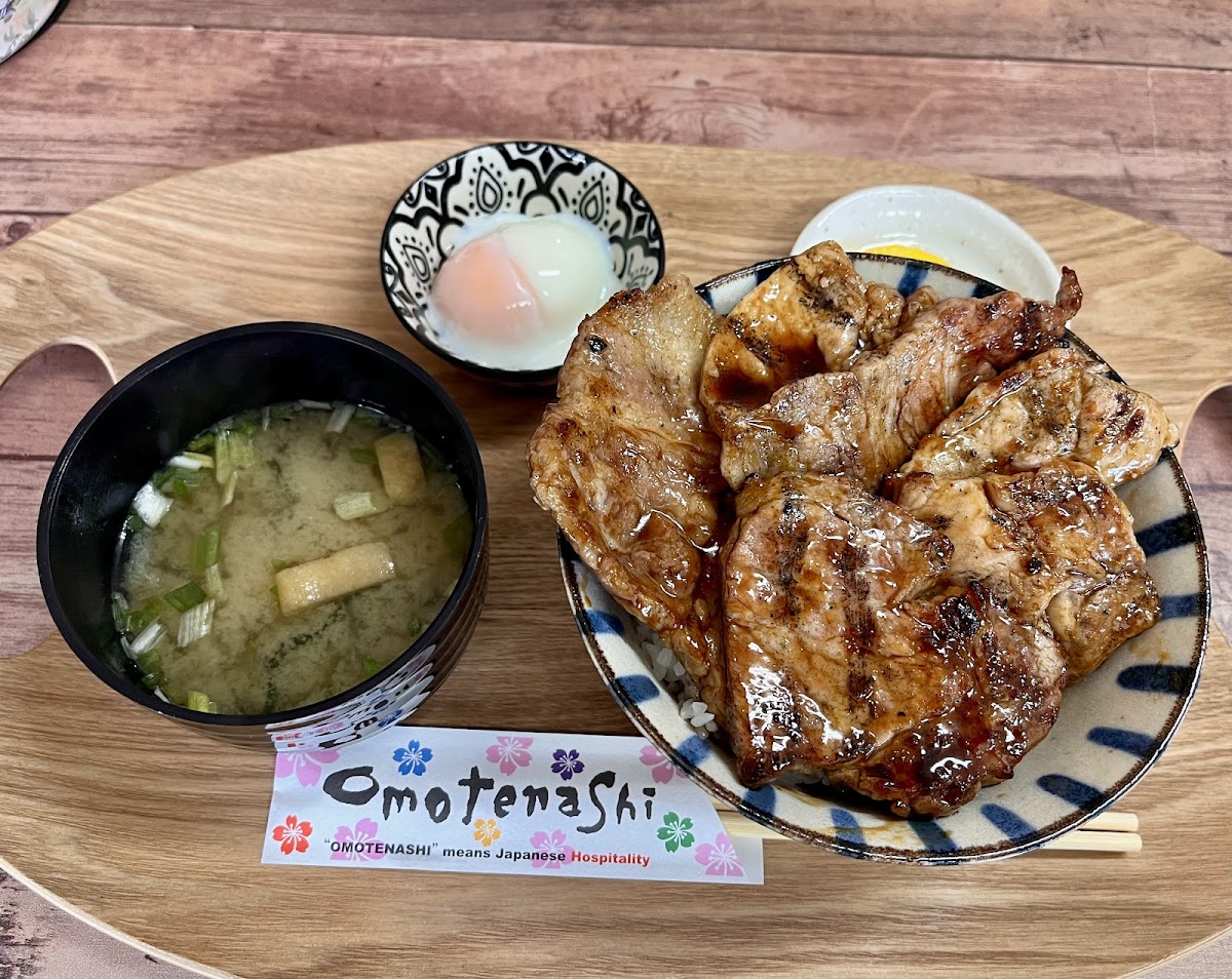 No visit to this quaint café is complete without indulging in the added delight of a soft-boiled onsen egg, which serves as a fantastic topping for your Butadon, offering a creamy textural contrast that elevates the dish further.